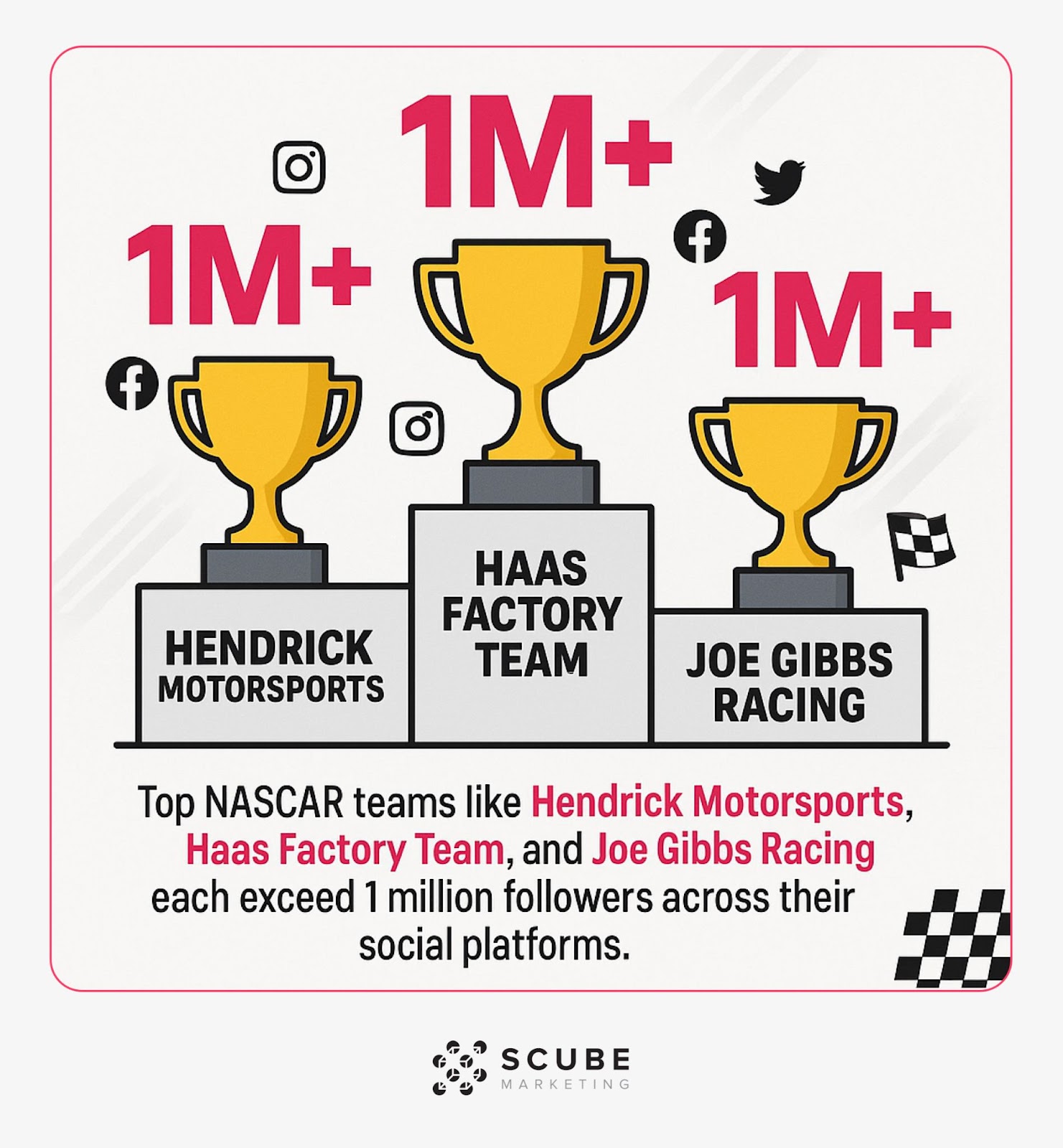 The social media landscape in motorsports continues to evolve rapidly. Top NASCAR teams like Hendrick Motorsports, Haas Factory Team, and Joe Gibbs Racing each exceed 1 million followers across their social platforms. (Source: SportsPro)