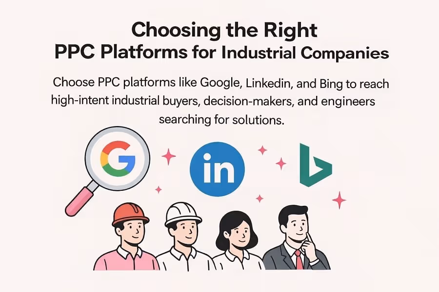 Platform choice should reflect how industrial buyers search and how you need to reach decision makers. For most manufacturing companies, paid search generates the strongest intent signals, while paid social supports targeting by company and role.