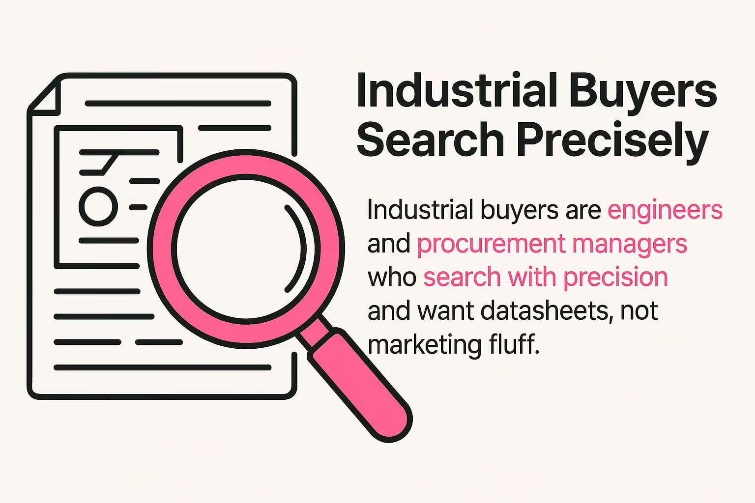 Industrial buyers do not browse like consumers. They do not impulse buy. They search with exact requirements, then validate fit. That is why seo for industrial companies focuses on precision queries, not broad awareness content.