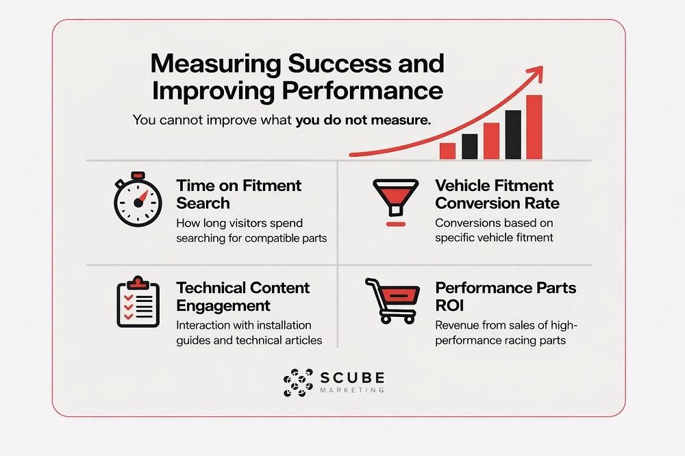 You cannot improve what you do not measure. For aftermarket racing parts marketing, standard eCommerce numbers are useful, but they are not enough on their own. You also need metrics that reflect how buyers behave in this technical category.
